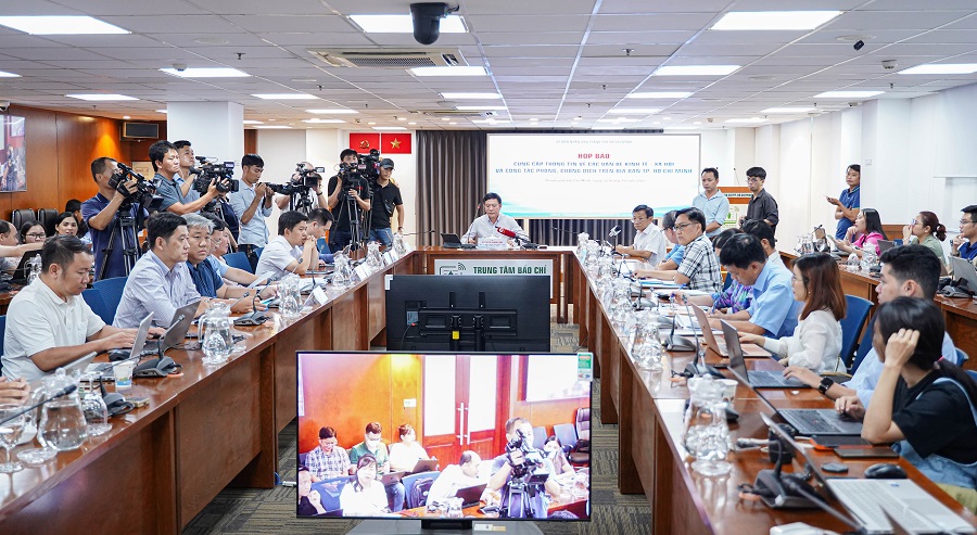 Toàn cảnh phiên họp chiều 12/10 tại Trung tâm Báo chí TP Hồ Chí Minh.