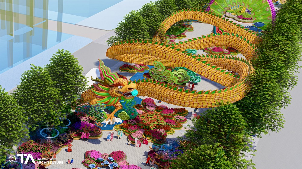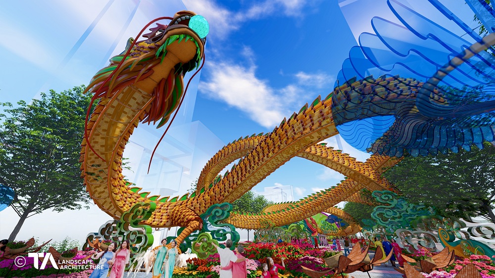 Linh vật Rồng dài 100m sẽ là điểm nhấn mạnh mẽ nhất trong thiết kể của đường hoa năm nay.