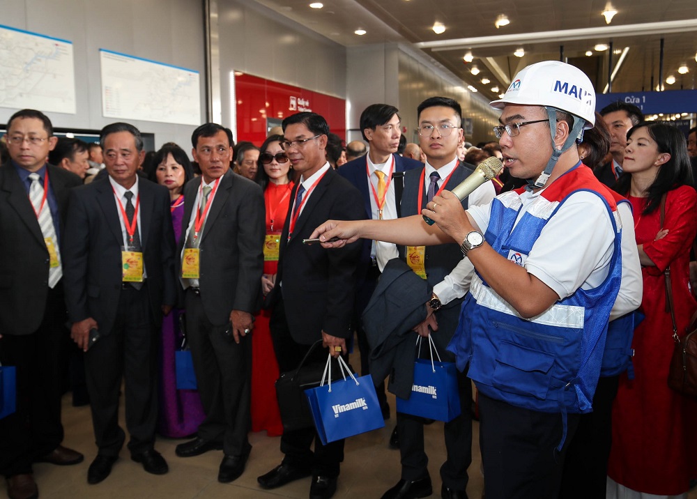 Kết thúc chương trình tại Khu tưởng niệm các Vua Hùng, đoàn tiếp tục đến tham quan, trải nghiệm tuyến Metro số 1 (Suối Tiên - Bến Thành).