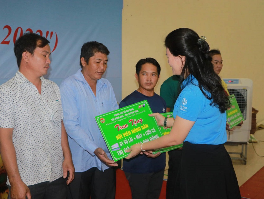 Khoảng 223 bộ công cụ sản xuất, phương tiện sinh kế và sửa chữa ghe lưới với tổng số tiền 3 tỷ 269 triệu đồng được trao tặng cho cho 200 hộ hội viên nông dân nghèo, cận nghèo trên địa bàn. Trong đó, trao tặng 58 hộ tại huyện Củ Chi; 1 hộ tại huyện Hóc Môn; 12 hộ tại huyện Bình Chánh; 11 hộ tại huyện Nhà Bè; 115 hộ tại huyện Cần Giờ; 3 hộ tại TP Thủ Đức.