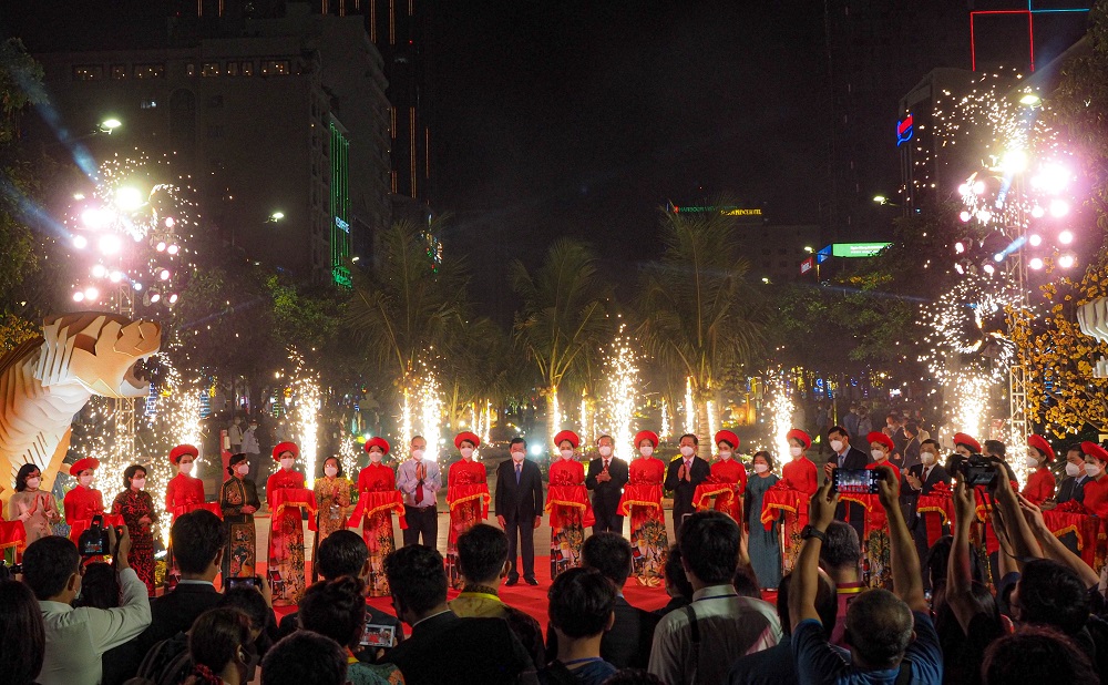 “Đường hoa Nguyễn Huệ là một trong những sự kiện tiêu biểu của Thành phố mang tên Bác Hồ kính yêu. Kế thừa và phát huy thành công qua 18 lần tổ chức, đường hoa Nguyễn Huệ Tết Nguyên Đán Nhâm Dần 2022 với chủ đề “Xuân quê hương, ấm tình nhân ái” là đường hoa thứ 19 được thực hiện trong dịp tết cổ truyền tại trung tâm Thành phố, địa điểm vui chơi, giải trí không thể thiếu đối với Nhân dân Thành phố và du khách trong dịp tết đến xuân về. Năm nay, đường hoa không chỉ là địa điểm khoe sắc, tỏa hương của hàng nghìn chậu hoa, mà còn ghi lại dấu ấn về một giai đoạn lịch sử khó quên của Thành phố sau thời gian dài chống dịch COVID-19…” – Phó chủ tịch UBND TP.HCM Dương Anh Đức phát biểu.