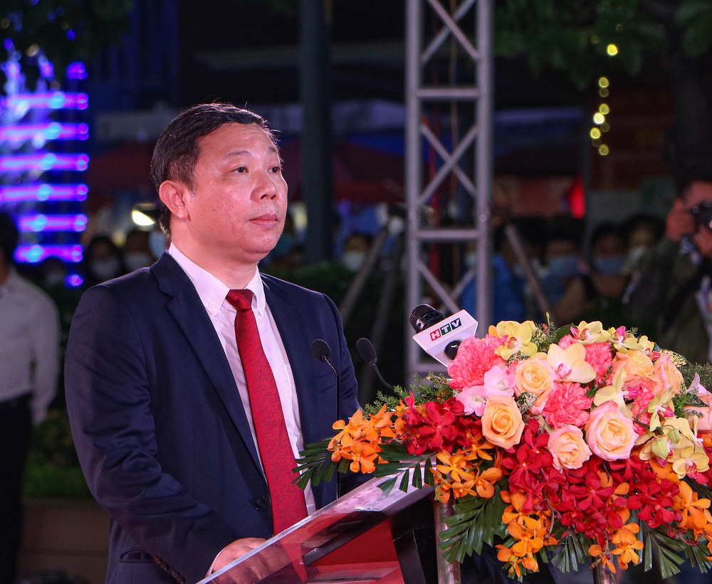 Đồng chí Dương Anh Đức – Phó Chủ tịch UBND TP.HCM, Trưởng Ban chỉ đạo đường hoa và lễ hội Tết Nguyên Đán Nhâm Dần 2022 đại diện lãnh đạo TP.HCM phát biểu khai mạc.