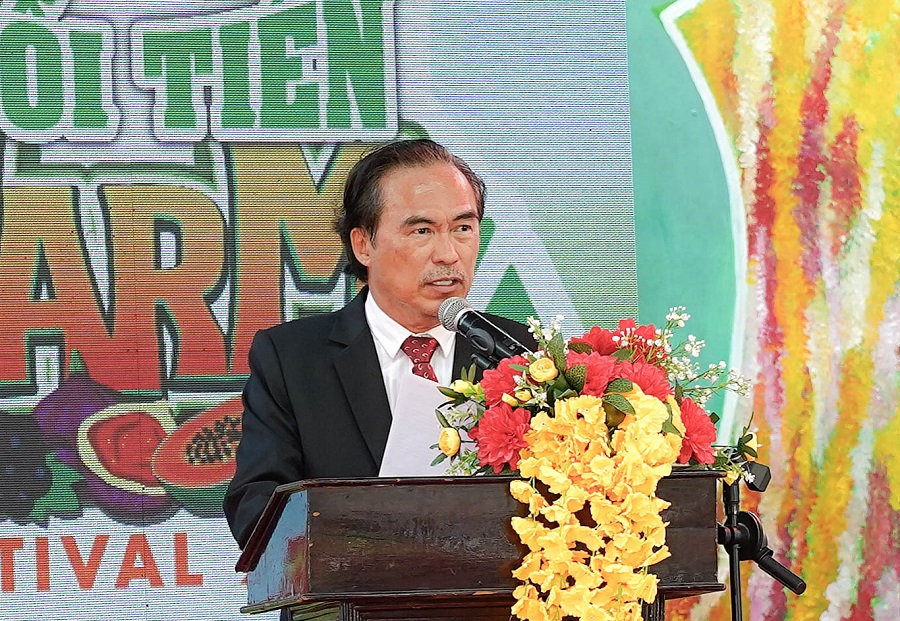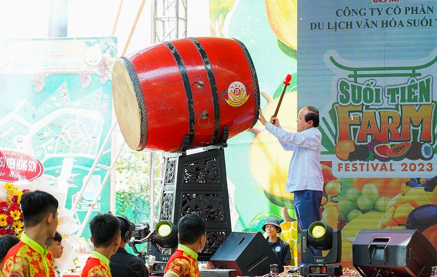 Anh hùng Lao động Đinh Văn Vui - Chủ tịch HĐQT, Tổng Giám đốc Tập đoàn Suối Tiên đánh trống khai mạc lễ hội.