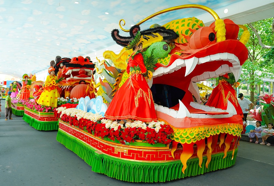 Sau chương trình khai mạc, các đoàn xe lễ hội, diễu hành quanh khuôn viên khu du lịch, phục vụ du khách.