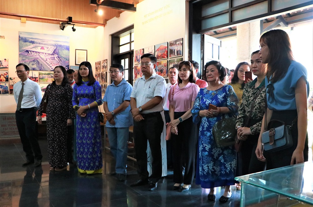 Đại diện khách mời, quý lãnh đạo tham dự buổi lễ, cắt băng khai mạc chương trình trưng bày chuyên đề "Văn hóa Đông Sơn".