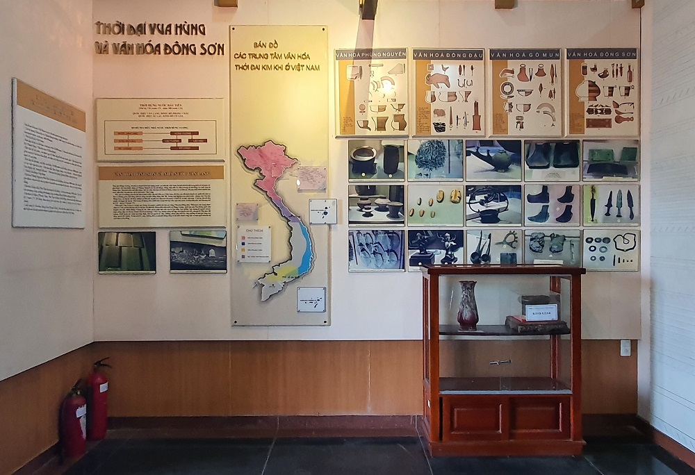 Không gian trưng bày hiện vật bao gồm: Công cụ sản xuất, vũ khí, trống đồng, đồ dùng sinh hoạt, trang sức, tùy táng… Đồng thời tại phòng trưng bày còn có những hiện vật, tài liệu, hình ảnh của Ban quản lý Công viên Lịch sử - Văn hóa Dân tộc TP.HCM sưu tầm, được hiến tặng trong suốt thời gian tìm hiểu, giới thiệu về lịch sử của thời đại Hùng Vương, Văn hóa Đông Sơn và quá trình xây dựng khu tưởng niệm các vua Hùng.