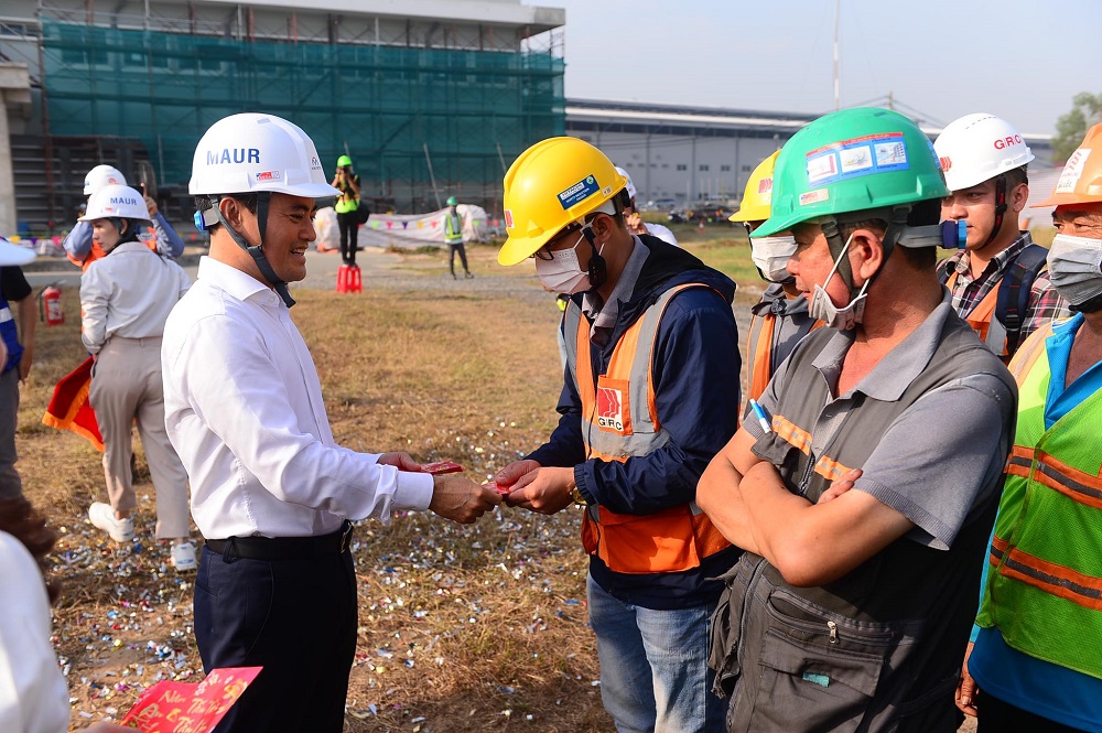 Nhân dịp đầu năm mới, Phó chủ tịch UBND TP Hồ Chí Minh đã thăm, chúc tết các công nhân làm việc tại công trường - Ảnh: Quang Định.