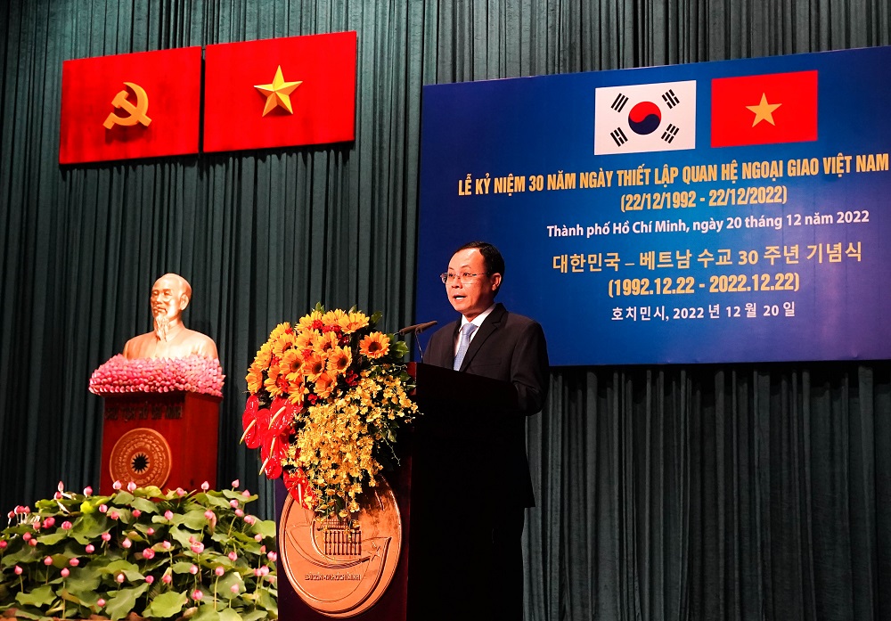 Ngày 20/12, TP Hồ Chí Minh tổ chức Lễ kỷ niệm 30 năm Ngày thiết lập quan hệ ngoại giao Việt Nam – Hàn Quốc (22/12/1992 – 22/12/2022).