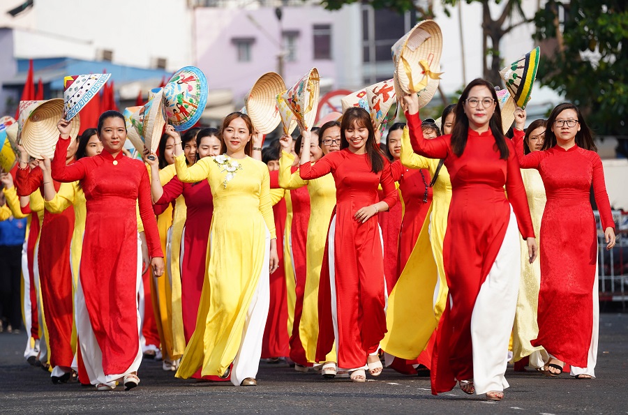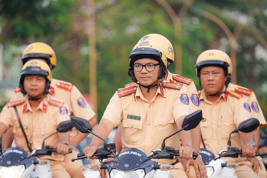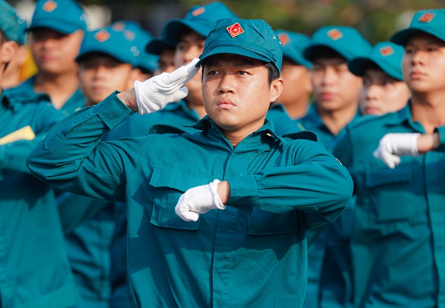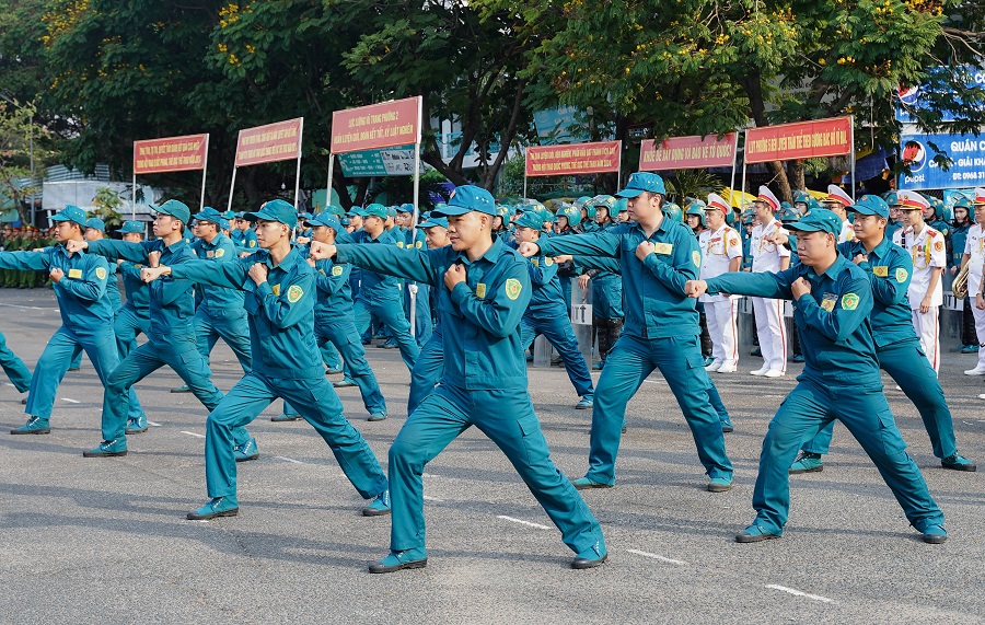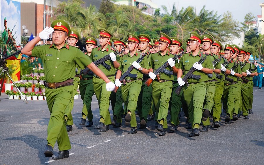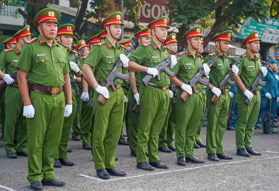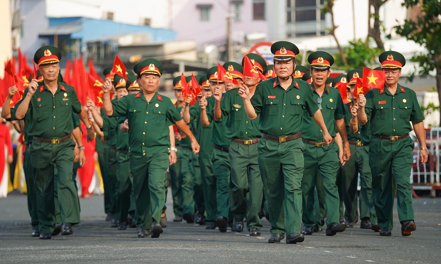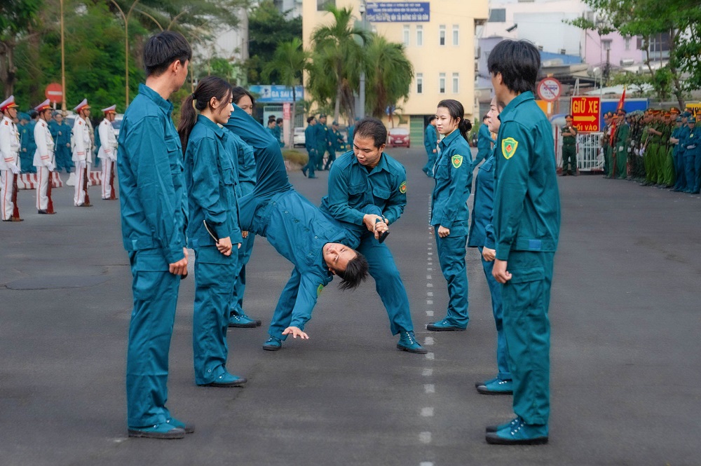 Các chiến sĩ khối vũ trang Công an nhân dân, Dân quân tự vệ, cảnh sát giao thông, Cựu chiến binh, Hội Liên hiệp phụ nữ Quận 3... tham gia đội hình duyệt đội ngũ.