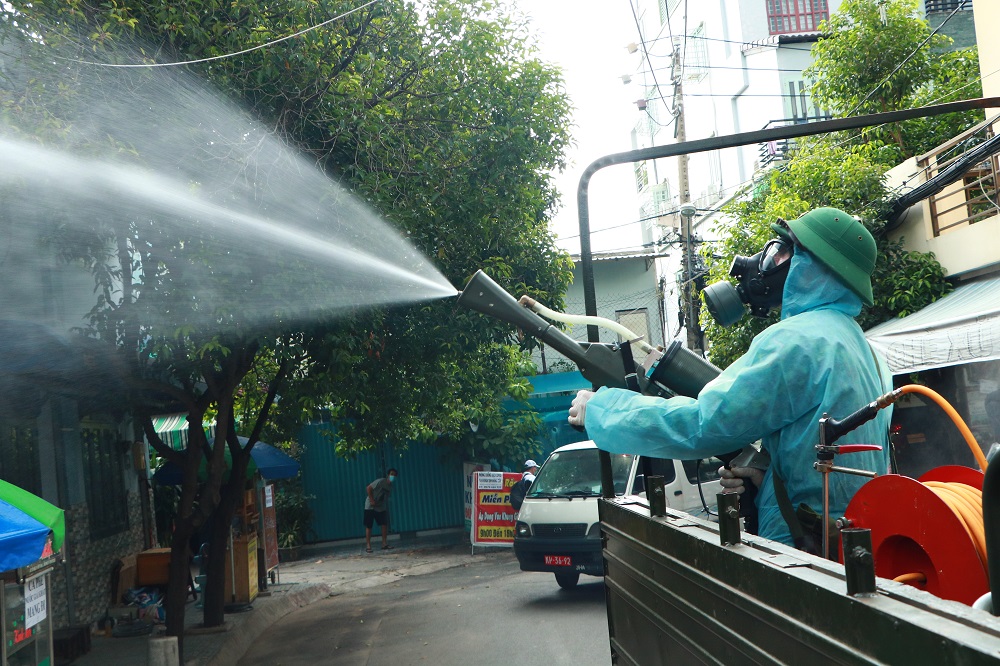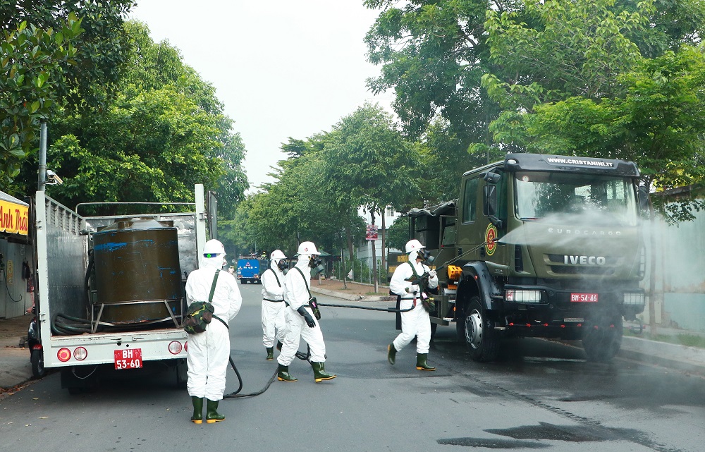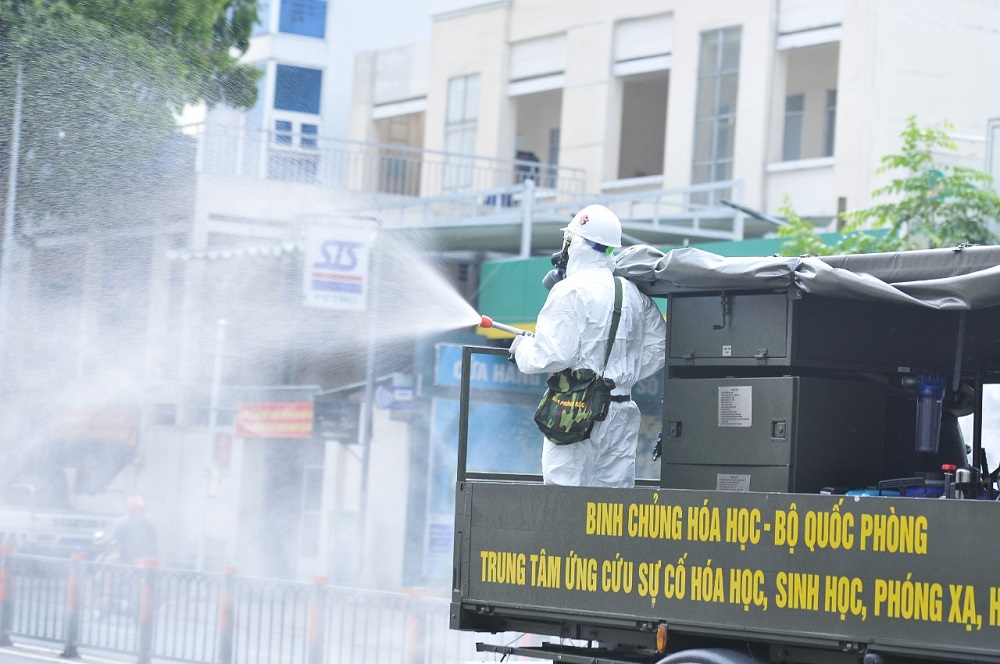 Tiểu đoàn Tiểu đoàn Phòng hóa 38, Bộ Tham mưu Quân khu 7 và Tiểu đoàn 907 Lữ đoàn 87, Binh chủng Hóa học huy động gần 100 cán bộ, chiến sĩ, cùng 15 xe đặc chủng ARS 14, xe tiêu tẩy đa năng IVECO tiêu tẩy đa năng hiện đại và các bình phun khử khuẩn đặc chủng cơ động để tham gia thực hiện nhiệm vụ phun rửa, khử trùng, tiêu độc tại các tuyến đường chính địa bàn 4 phường: Phường 3, Phường 11, Phường 14 và Phường 15 của quận Gò Vấp và phường Thạnh Lộc Quận 12, đặc biệt là tuyến đường Nguyễn Văn Công, quanh khu vực nhà thờ 'hội thánh truyền giáo Phục Hưng, phường 3, nơi được xem là ổ dịch lớn của thành phố.