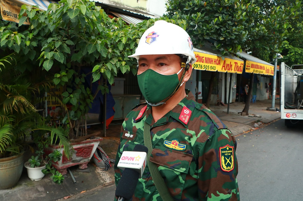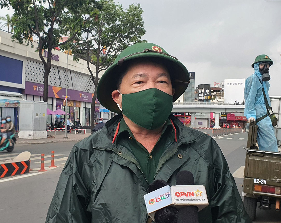 Thượng tá Cao Văn Phát - Phó Tham mưu trưởng Bộ Tư lệnh TP.HCM cho biết: “Được sự quan tâm của thủ trưởng Bộ Tư lệnh Quân khu, của Bộ Quốc phòng, Bộ Tư lệnh thành phố được sự hỗ trợ của các đơn vị phòng hóa của Quân khu, cũng như của Bộ Quốc phòng tổ chức tiêu tẩy, khử khuẩn trên địa bàn quận Gò Vấp. Đồng thời chuẩn bị cho địa bàn huyện Hóc Môn và Quận 12 sắp tới và tạo cho bà con an tâm có lực lượng vũ trang hỗ trợ bà con chống dịch”