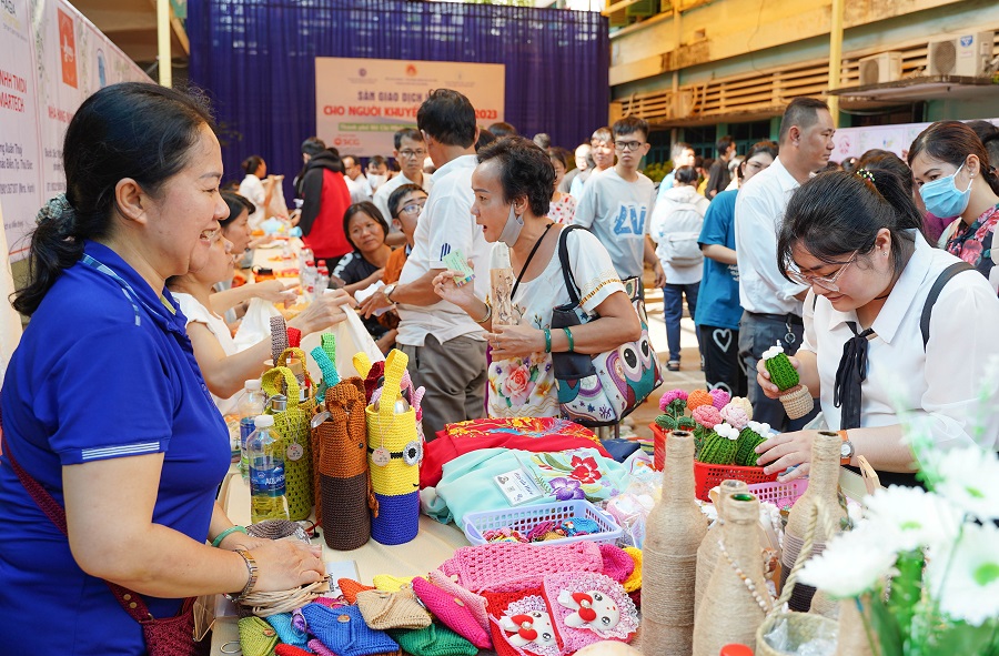 Hơn 350 người khuyết tật trên địa bàn TP Hồ Chí Minh đến với sàn giao dịch việc làm điều là những đối tượng yếu thế, khiếm khuyết bản thân. Những người khuyết tật tham gia chương trình với mong muốn được học nghề, tìm kiếm công việc bền vững phù hợp với điều kiện, khả năng của bản thân. Ngoài đối tượng yếu thế, có khoảng 20 doanh nghiệp đa lĩnh vực từ sản xuất đồ thủ công mỹ nghệ, dệt may, công nghệ vi tính, cơ sở massage khiếm thị... cùng tham gia sàn giao dịch. Tại đây, các đơn vị doanh nghiệp đã chia sẻ về nhu cầu tuyển dụng lao động là người khuyết tật, các chính sách hỗ trợ, thông tin pháp luật liên quan cho từng đối tượng tìm hiểu.