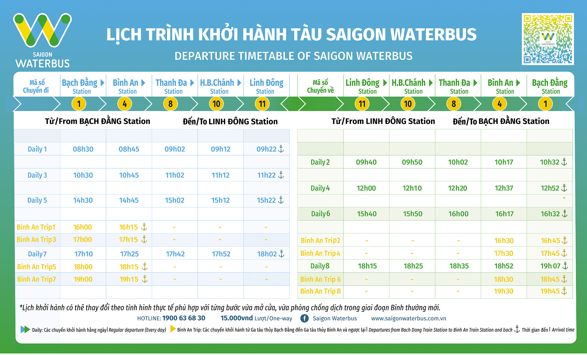 Lịch trình di chuyển của tuyến buýt đường sông Waterbus.
