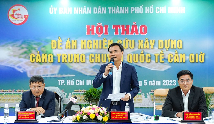 Phó chủ tịch UBND TP Hồ Chí Minh nhận định, huyện Cần Giờ là địa phương này có vị trí địa lý tiếp giáp với biển Đông, nằm giữa 2 cửa sông lớn Soài Rạp, Lòng Tàu và tiếp giáp với sông Thị Vải. Khu vực có các tuyến hàng hải quan trọng của cảng biển nhóm 4 (Nhóm cảng biển Nam Trung bộ), hội tụ đủ điều kiện để phát triển cảng biển cửa ngõ quốc gia và trung chuyển quốc tế. Trên cơ sở các căn cứ chính trị, cơ sở pháp lý và thực tiễn phát triển, TPHCM đã hoàn thành dự thảo Đề án nghiên cứu xây dựng cảng trung chuyển quốc tế Cần Giờ.
