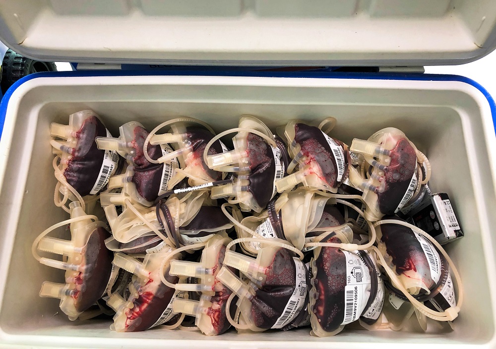Các đơn vị máu sau khi hiến sẽ được bảo quản trong thùng lạnh, di chuyển về ngân hàng lưu trữ máu của TP.HCM để lưu trữ và sử dụng.