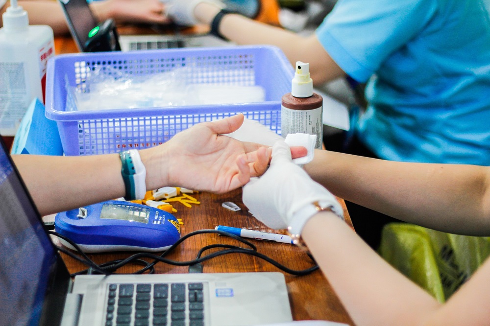 Người tham gia được kiểm tra nhanh sức khỏe trước khi tham gia hiến máu.