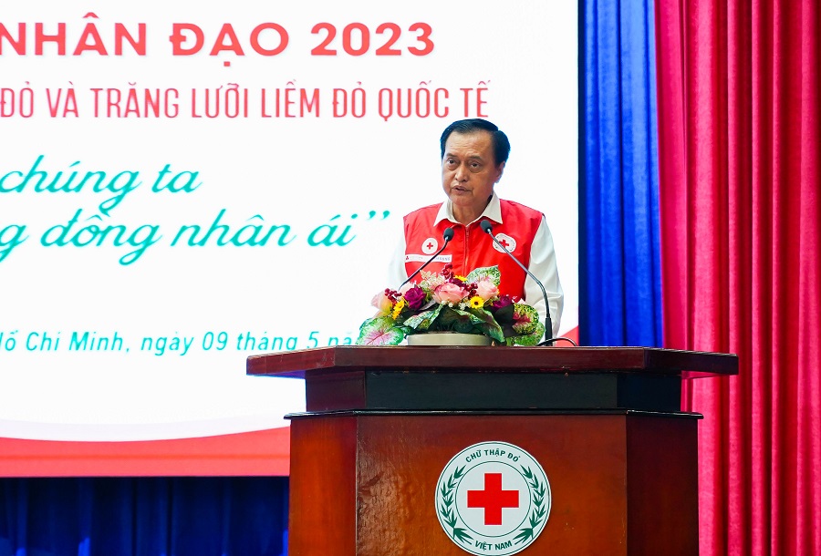 Chủ tịch Hội Chữ thập đỏ TP Hồ Chí Minh Trần Trường Sơn phát động Tháng nhân đạo 2023.