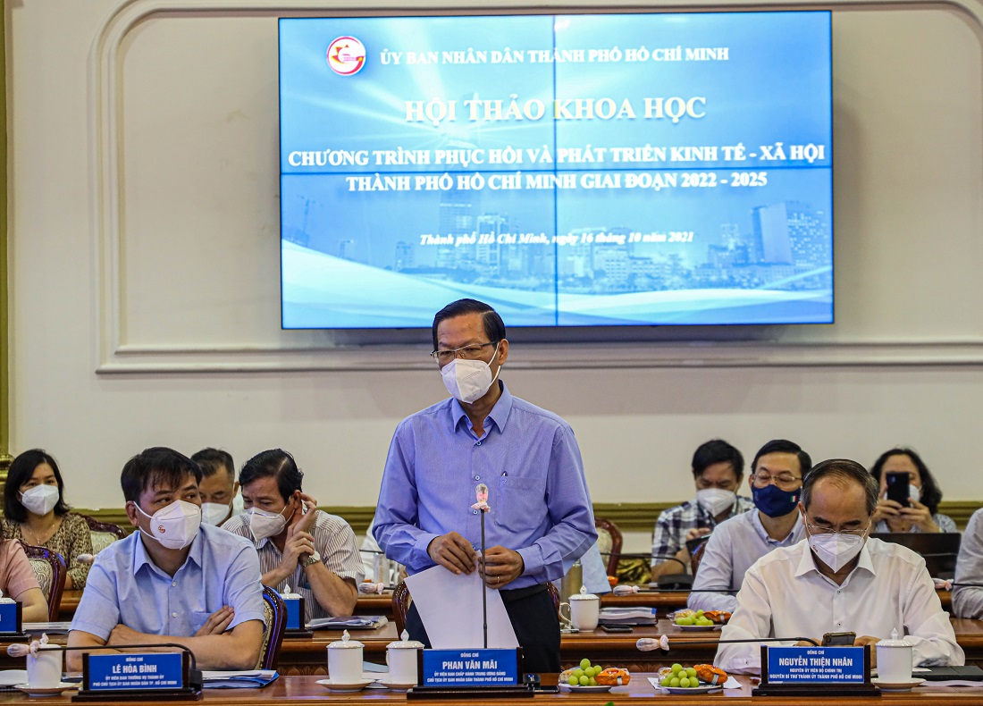 Phát biểu bế mạc hội thảo, Chủ tịch UBND TP.HCM đại diện lãnh đạo Thành phố tiếp thu các ý kiến, tham luận về chương trình phục hồi và phát triển bền vững kinh tế giai đoạn 2022 - 2025. Đồng thời, đ/c Phan Văn Mãi cũng gửi lời cảm ơn đến đại diện quý lãnh đạo Sở, ban, ngành, các chuyên gia, nhà khoa học đã tham gia hội thảo.