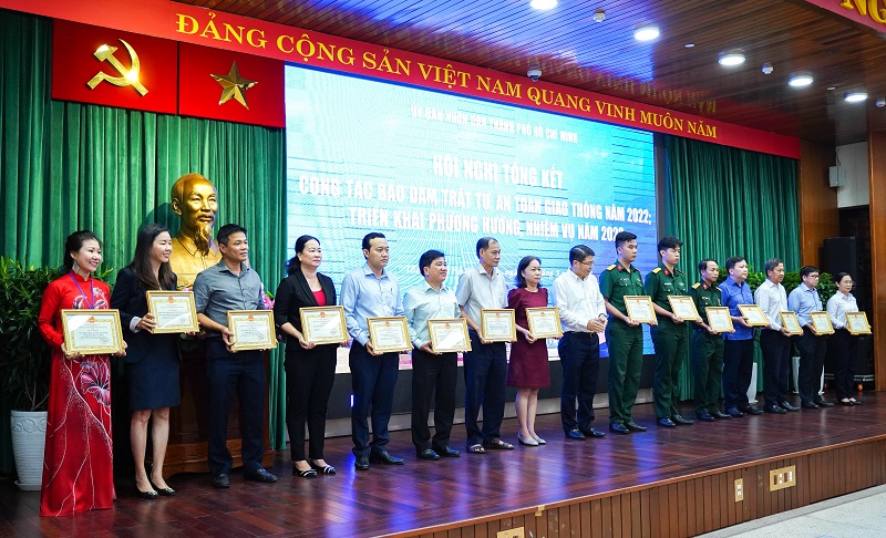 Ban An toàn giao thông TP Hồ Chí Minh khen thưởng cho 63 tập thể, 42 cá nhân do có đóng góp tích cực vào công tác đảm bảo TTATGT trên địa bàn năm 2022.