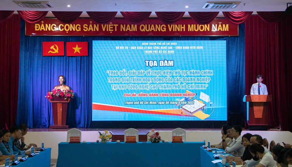 Bên cạnh lễ khai mạc, buổi Tọa đàm “Giải đáp về việc thực hiện TTHC trong quá trình hoạt động của doanh nghiệp (14 doanh nghiệp) tại Khu Công nghệ cao Thành phố Hồ Chí Minh” đã diễn ra với sự tham dự Sở Xây dựng; Sở Quy hoạch - Kiến trúc; Sở Tài nguyên và Môi trường; Sở Kế hoạch và Đầu tư; Sở Lao động - Thương binh và Xã hội; Sở Tư pháp; Sở Thông tin và Truyền thông, Văn phòng Ủy ban nhân dân Thành phố, Cục Thuế Thành phố; Cục Hải quan Thành phố; Bảo hiểm xã hội Thành phố, Ủy ban nhân dân thành phố Thủ Đức…