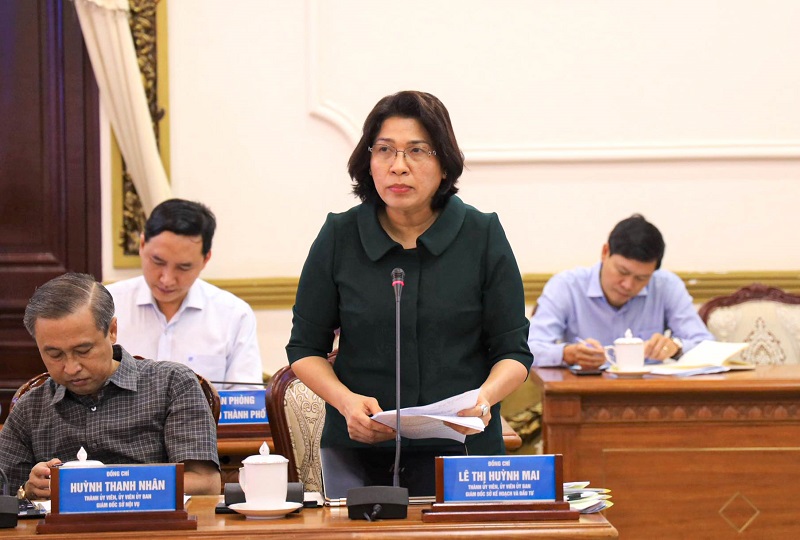 Giám đốc Sở Kế hoạch và Đầu tư Thành phố Lê Thị Huỳnh Mai báo cáo kết quả phát triển kinh tế - xã hội tại phiên họp.