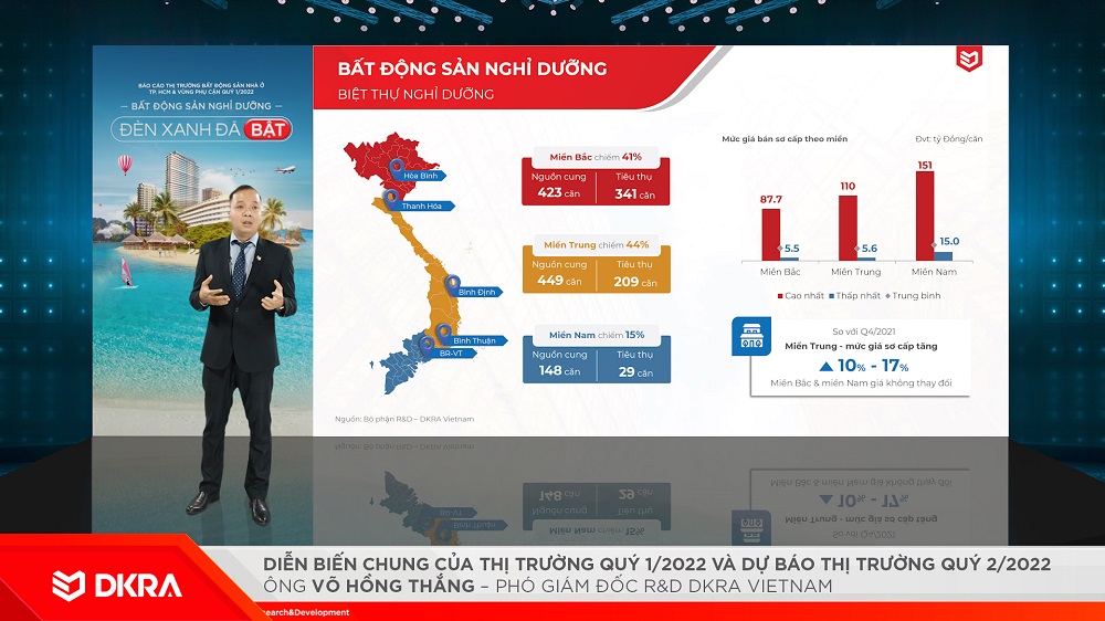 Ông Võ Hồng Thắng - Phó Giám đốc R&D DKRA Vietnam trình bày diễn biến thị trường bất động sản Nhà ở TP.HCM và vùng phụ cận Quý 1 và dự báo thị trường Quý 2/2022