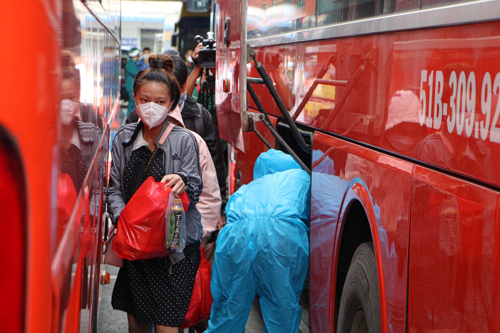 Người dân được hỗ trợ về địa phương trong sáng nay, đều là lao động phổ thông, phụ nữ mang thai, người lớn tuổi, trẻ em… đang sinh sống và làm việc tại TP.HCM. Đa phần họ đều chịu ảnh hưởng và gặp khó khăn trong thời gian dài Thành phố giãn cách xã hội vì COVID-19.