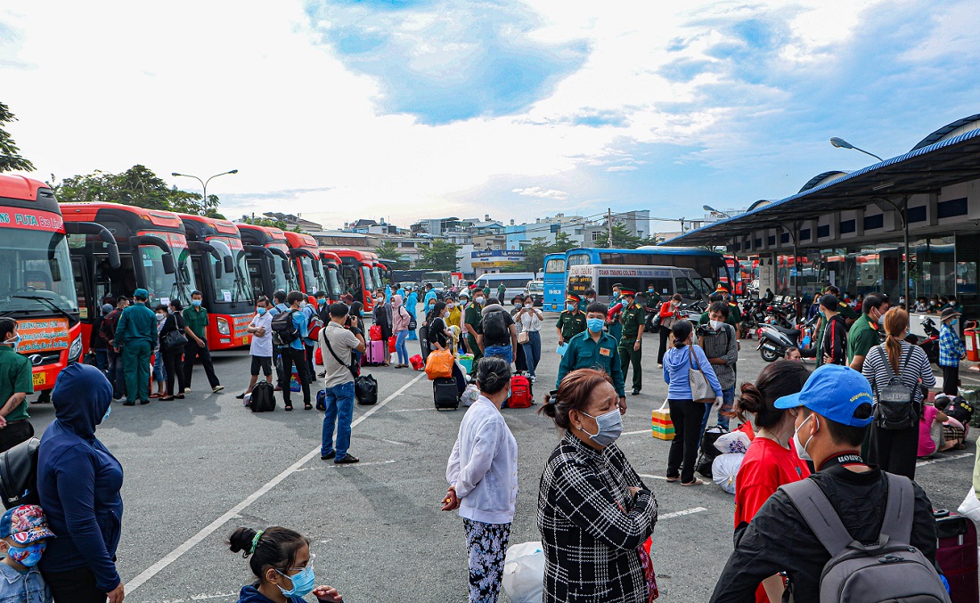Người dân được hỗ trợ về địa phương trong sáng nay, đều là lao động phổ thông, phụ nữ mang thai, người lớn tuổi, trẻ em… đang sinh sống và làm việc tại TP.HCM. Đa phần họ đều chịu ảnh hưởng và gặp khó khăn trong thời gian dài Thành phố giãn cách xã hội vì COVID-19.