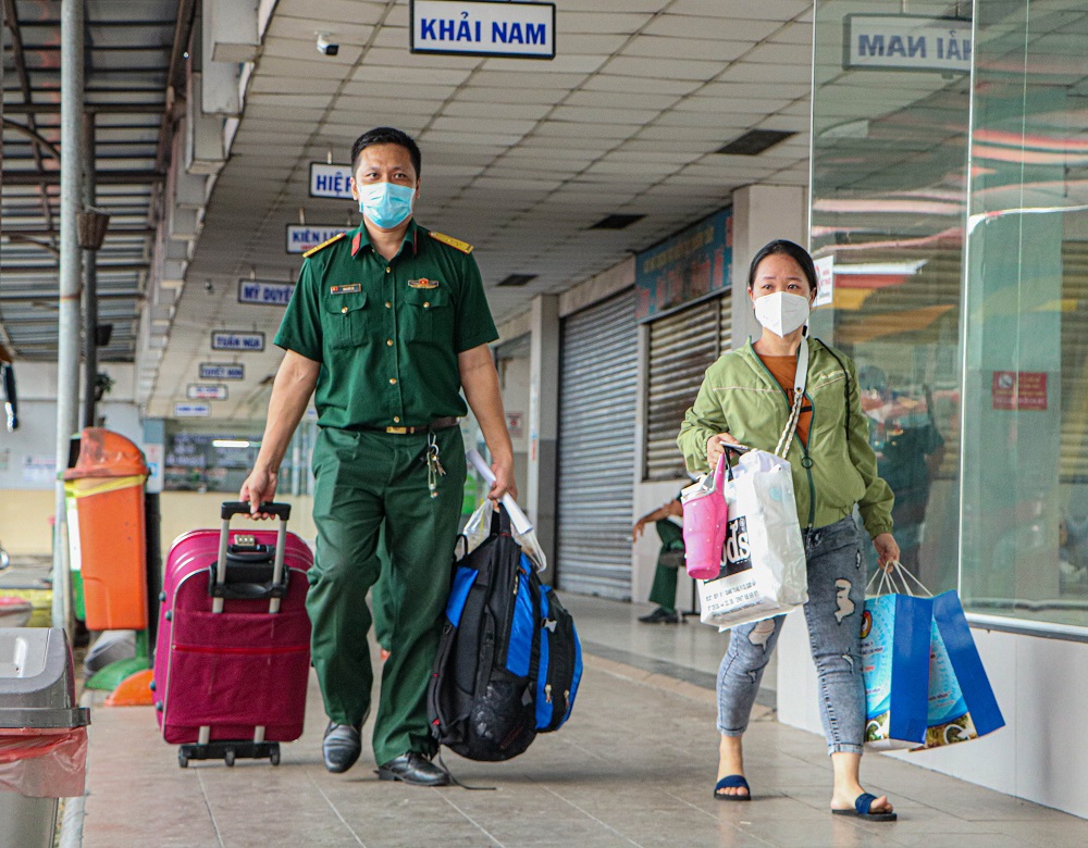 “Nhờ mấy chú bộ đội cùng Thành phố hỗ trợ, nên chúng tôi được về nhà dưới quê. Đi như thế này an tâm, không lo trộm cắp, về lại an toàn hơn, có chỗ cách ly cẩn thận. Đi về bằng phương xe cá nhân thì vất vả, nguy hiểm. Nhà nước cũng không khuyến khích mình làm kiểu đó” – Cô Trần Thị Lựu chia sẻ.