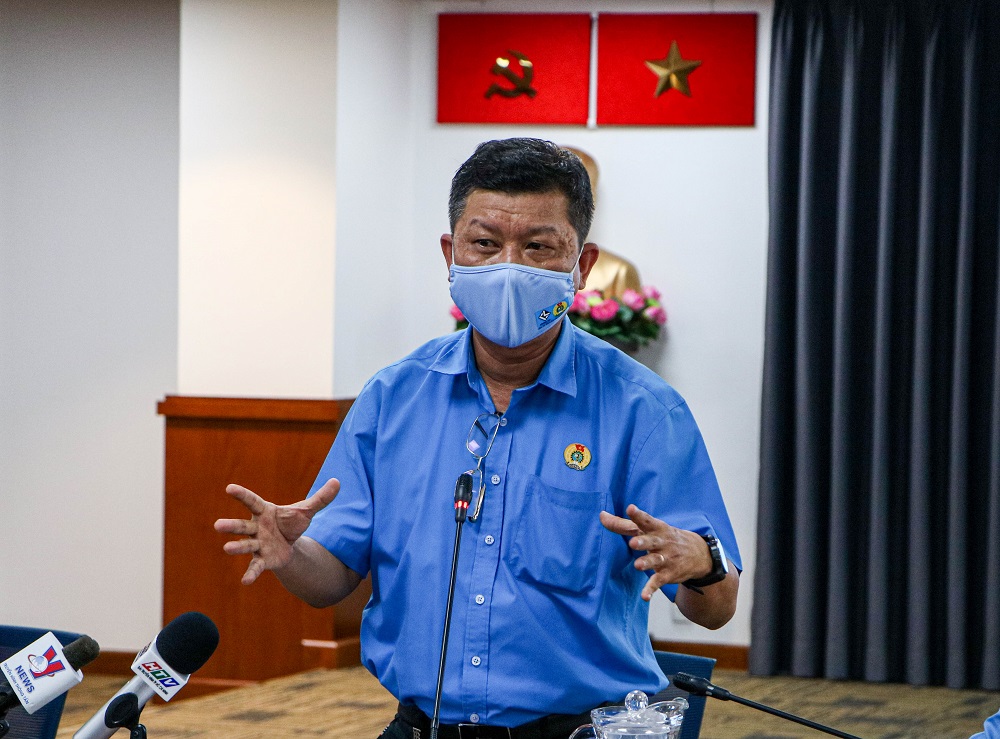 Ông Trần Đoàn Trung – Phó chủ tịch Thường trực Liên đoàn Lao động TP.HCM trao đổi tại họp báo.