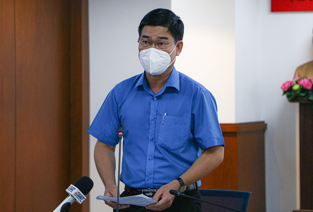 Phó Chủ tịch Liên đoàn Lao động TP.HCM Phạm Chí Tâm thông tin tại họp báo.