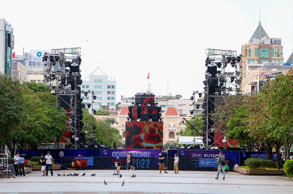 Khu vực diễn ra chương trình chào đón năm mới 2022 được tổ chức tại Phố đi bộ Nguyễn Huệ (Quận 1, TP.HCM).