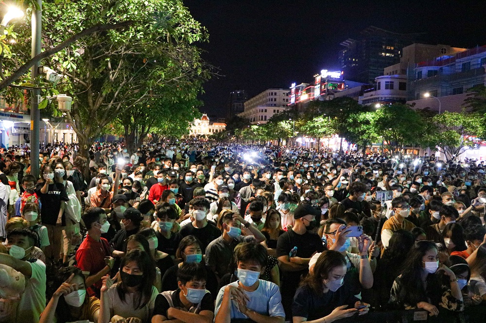 Bên ngoài khu vực tổ chức chương trình, có hàng nghìn người tập trung chờ đến khoảnh khắc chào đón năm mới 2022.