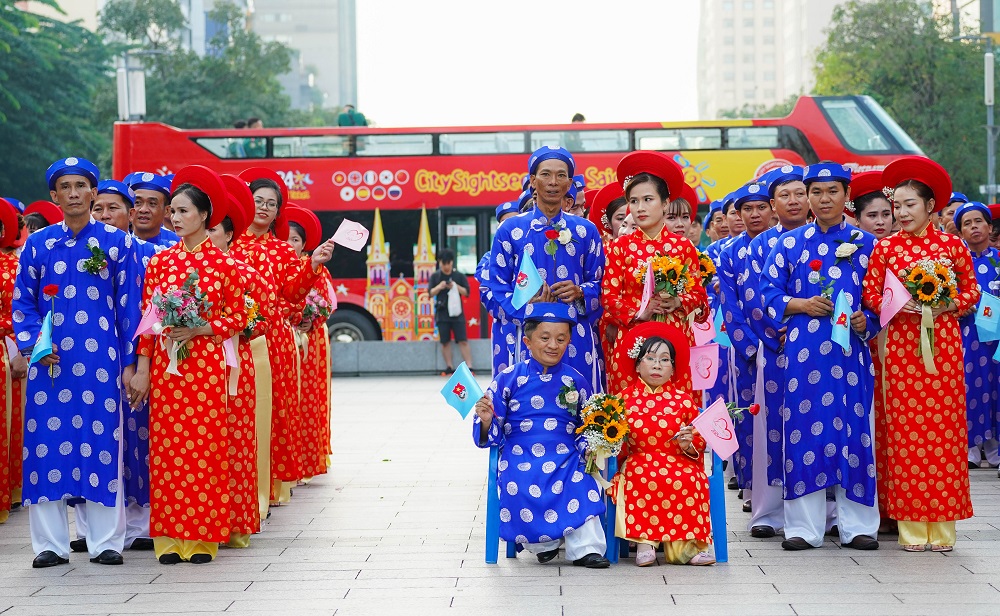 Sau khi hoàn thành lễ dâng hương, các cặp đôi sẽ diễu hành qua một số tuyến đường quanh trung tâm thành phố và về lại Trung tâm Hội nghị Tiệc cưới Long Biên Palace.