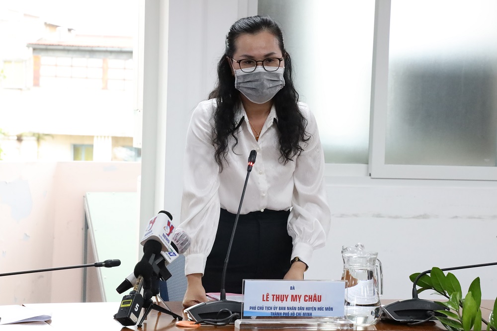 Bà Lê Thụy Mỹ Châu, Phó Chủ tịch UBND huyện Hóc Môn cung cấp một số thông tin về tình dịch bệnh tại địa phương.