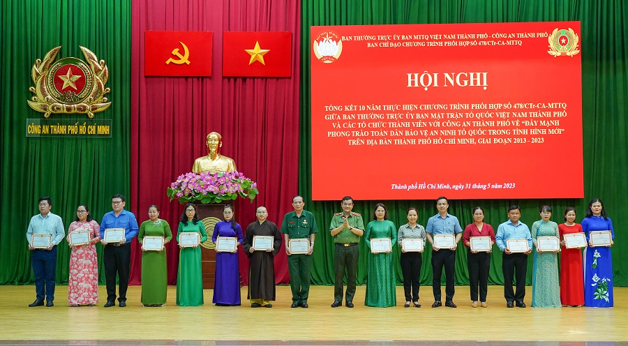 Nhân dịp này, UBND TP Hồ Chí Minh tặng bằng khen cho 48 tập thể, 1 cá nhân; UBMTTQVN TP Hồ Chí Minh tặng bằng khen cho 17 tập thể, 18 cá nhân. Ngoài ra, Công an TP Hồ Chí Minh tặng giấy khen cho 40 tập thể, 20 cá nhân có thành tích xuất sắc trong phong trào Toàn dân bảo vệ an ninh Tổ quốc trong tình hình mới trên địa bàn TP Hồ Chí Minh, giai đoạn 2013 – 2023.