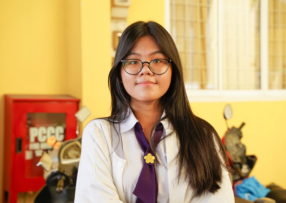 Sau khi ba mất do dịch COVID-19, cuộc sống của Tố Uyên và mẹ ngày trở nên khó khăn. Do không có điều kiện kinh tế nên hai mẹ con dọn về sinh sống cùng bà ngoại. Mẹ của Tố Uyên làm nghề mua bán nhỏ để trang trải cuộc sống của gia đình, con đường học tập của em gặp nhiều thách thức hơn. Tố Uyên chia sẻ: “Đây không phải là lần đầu tiên em được nhận học bổng, trong thời gian qua, các cô chú của hội và địa phương đã tạo điều kiện cho em rất nhiều. Nhận được những phần quà ý nghĩa như thế này, em cảm thấy mình may mắn, bớt đi một phần gánh nặng với mẹ. Mong rằng các bạn nhận hỗ trợ như em sẽ cố gắng học tập ngày một tốt hơn để cuộc sống sau này sẽ không vất vả hơn”.