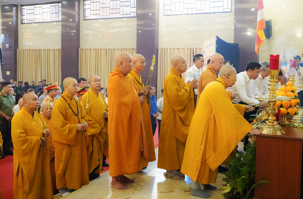 Buổi lễ diễn ra trong không khí trang nghiêm với sự tham gia của hơn 500 cán bộ, nhân viên, tăng ni, phật tử và người dân Thành phố.