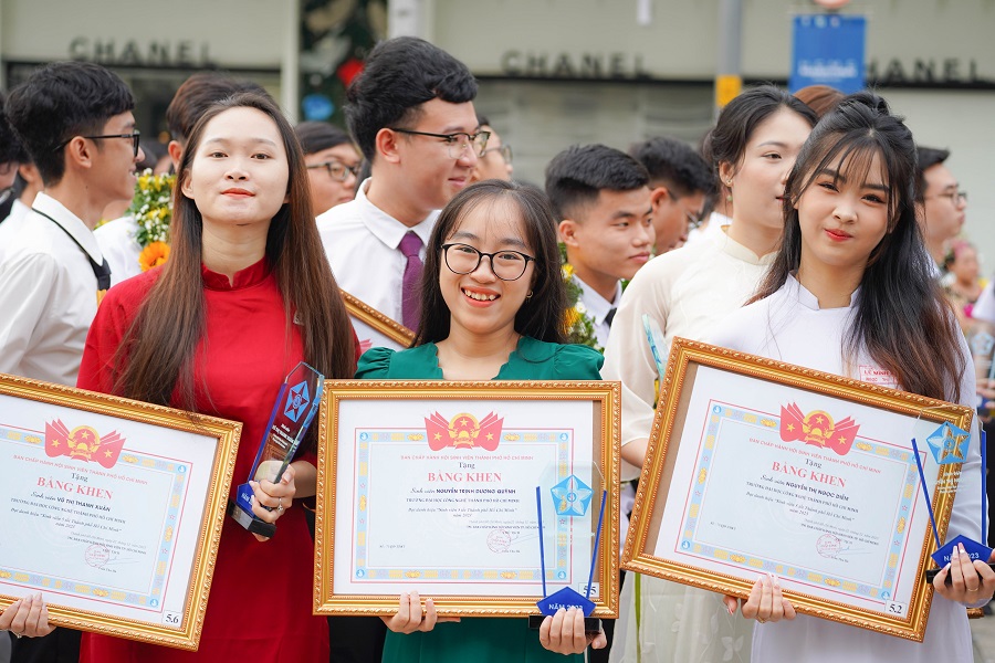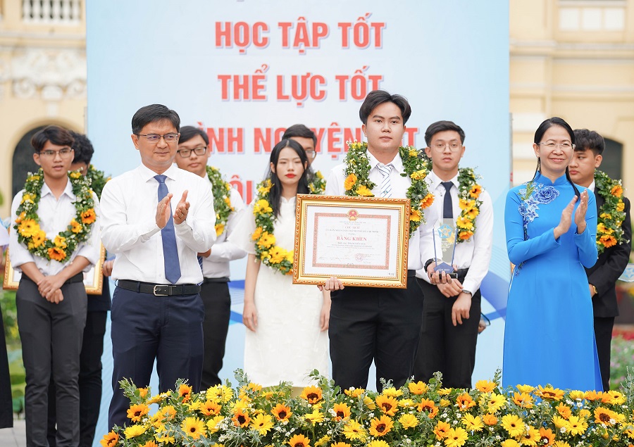 Phó Chủ tịch UBND TP Hồ Chí Minh Dương Anh Đức, Bí thư Thành đoàn TP Hồ Chí Minh trao bằng khen đến các gương tiêu biểu.