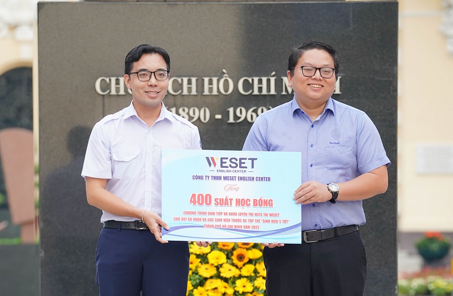 Đại diện Cty TNHH Weset English Center trao học bổng chương trình giao tiếp và khóa luyện thi IELTS tại WESET cho 307 cá nhân và 95 sinh viên thuộc 5 Tập thể “Sinh viên 5 tốt” được tuyên dương ngày hôm nay.