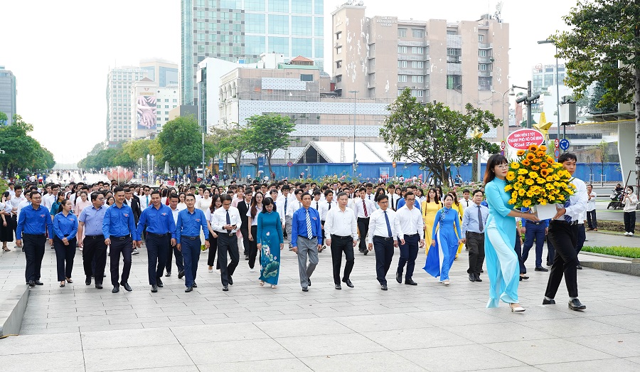 Ngay từ sớm, đại diện Trung ương Hội Sinh viên Việt Nam, lãnh đạo TP Hồ Chí Minh, Thành đoàn Thành phố cùng các tổ chức, đoàn thể tiến hành dâng hoa, báo công trước Tượng đài Chủ tịch Hồ Chí Minh (Phố đi bộ Nguyễn Huệ, Quận 1, TP Hồ Chí Minh).