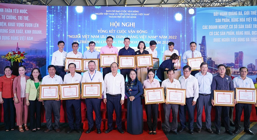 Nhân dịp này, UBND TP Hồ Chí Minh quyết định tặng bằng khen cho 29 tập thể có thành tích xuất sắc, có mô hình, cách làm hay, hiệu quả trong thực hiện Cuộc vận động “Người Việt Nam ưu tiên dùng hàng Việt Nam” năm 2022.
