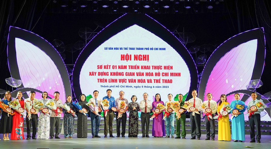 Nhân dịp này, Sở Văn hóa và Thể thao TP Hồ Chí Minh trao tặng biểu trưng cho các tập thể, cá nhân đã có thành tích, đóng góp xuất sắc trong việc xây dựng Không gian văn hóa Hồ Chí Minh.