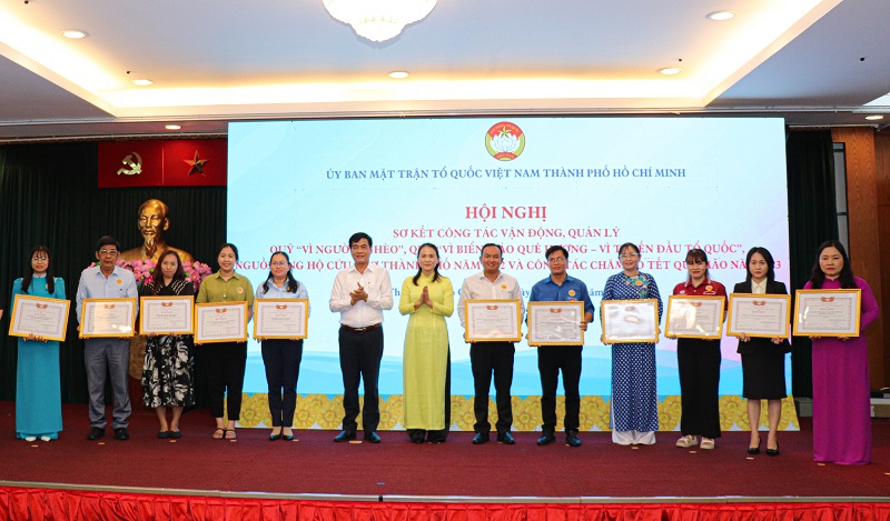 Dịp này, Ủy ban MTTQ Việt Nam TP.HCM tặng bằng khen cho 97 tập thể, 27 cá nhân có thành tích xuất sắc trong các hoạt động, vận động ủng hộ các nguồn quỹ trong năm 2022 và công tác chăm lo Tết Nguyên đán Quý Mão năm 2023.