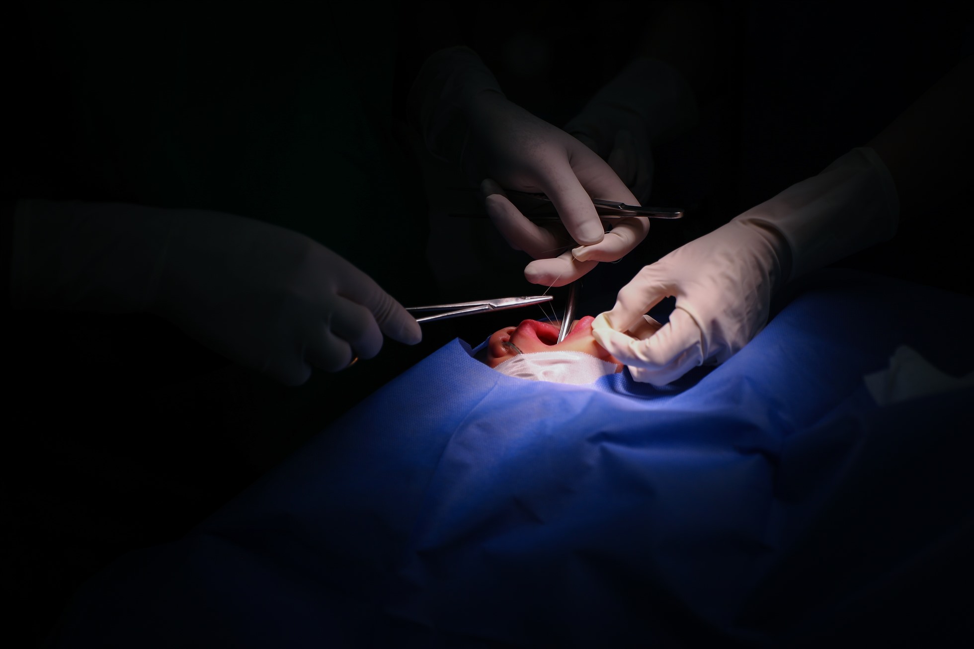Bác sĩ tiến hành công đoạn chỉnh sửa môi cho bệnh nhi. Ảnh: laodong.vn