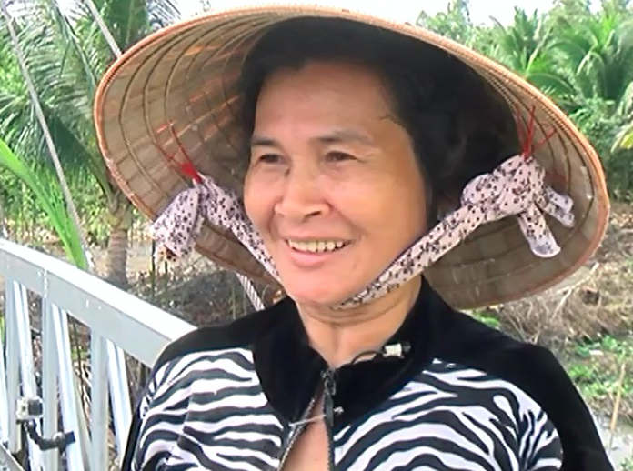 | Cô Trần Thị Bé Ba phấn khởi khi được đi trên cây cầu mới |