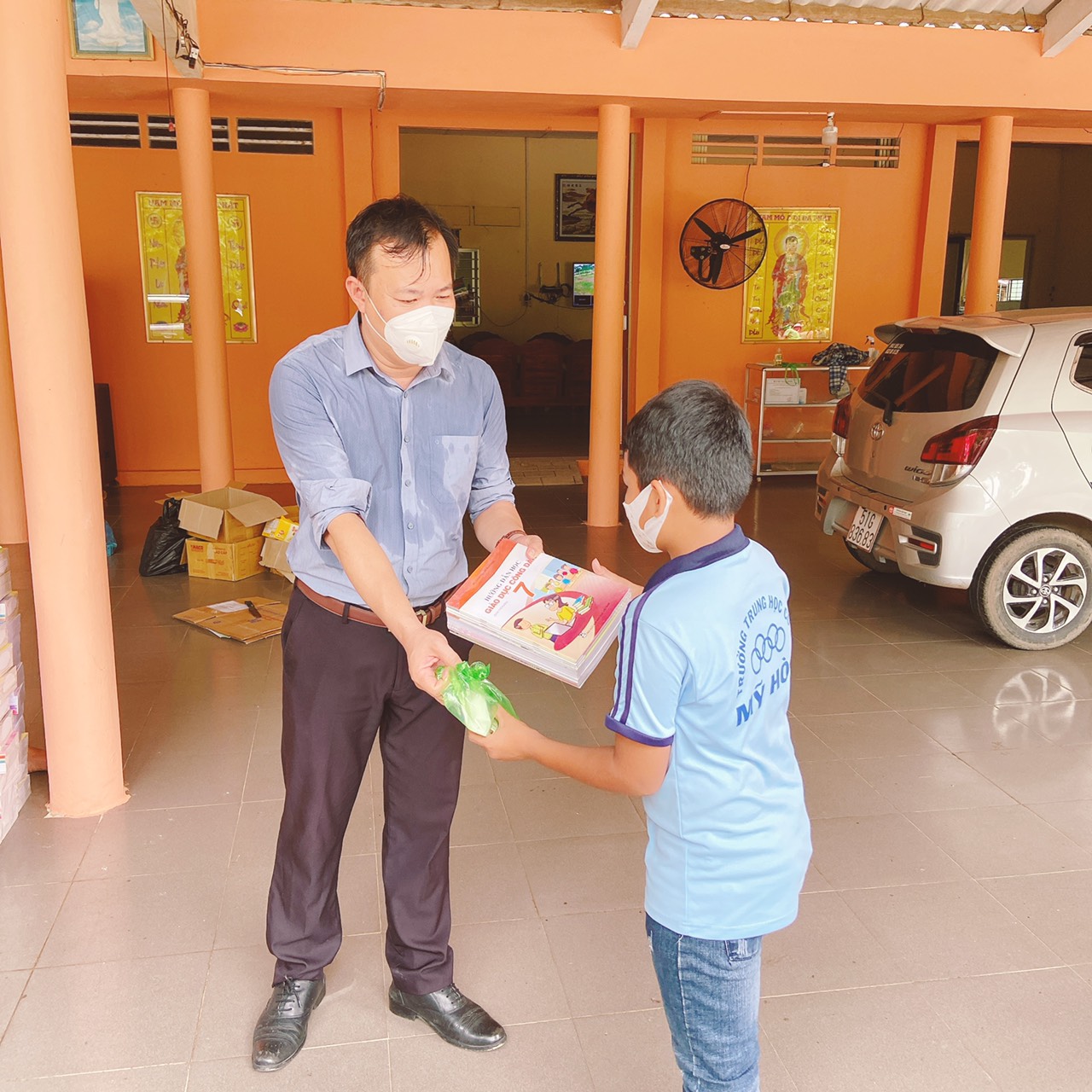 Tổng trị giá các phần quà hơn 30 triệu đồng, dành cho 200 học sinh cấp Tiểu học và Trung học cơ sở có hoàn cảnh khó khăn, có Bố (Mẹ) bị mất bởi dịch Covid-19 tại các xã Mỹ Hòa, Mỹ Long Bắc (mỗi suất bao gồm tập vở, sách giáo khoa, dụng cụ học tập và bánh kẹo).