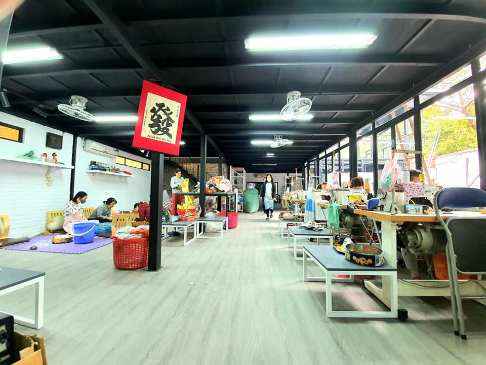 Một điểm đặc biệt nữa ở tổ hợp KymViet Space là trên những bức tường, chiếc bàn, kệ tủ đều trưng bày các sản phẩm thủ công như túi xách, thú nhồi bông với màu sắc đa dạng, đường nét tinh xảo. Trên mỗi sản phẩm có mùi thơm của tinh dầu và chúng chính là thành phẩm của những nhân viên ở đây.