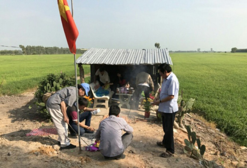 | Miếu thờ do ông Sáu Dùng (xã Vĩnh Đại) dựng lên từ năm 2010 tại Kênh 62 để người dân đến thắp hương tưởng nhớ các liệt sĩ đã hy sinh. |