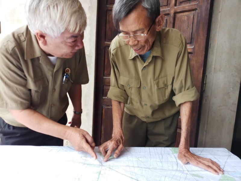 | CCB - Thiếu tá Trần Duy Quang (đứng bên phải) nguyên Tiểu đoàn phó D7 E88A đang kể lại trận đánh Kênh Ngang, Kênh 62 |